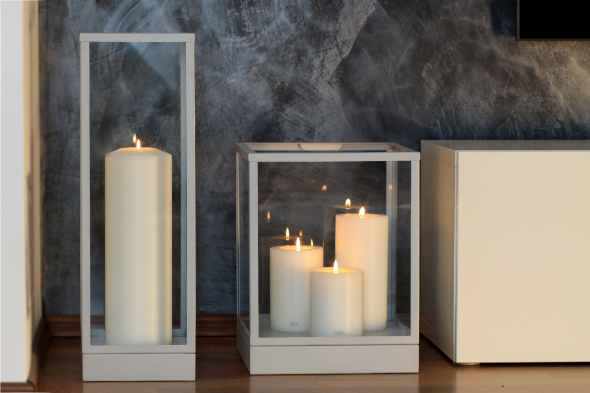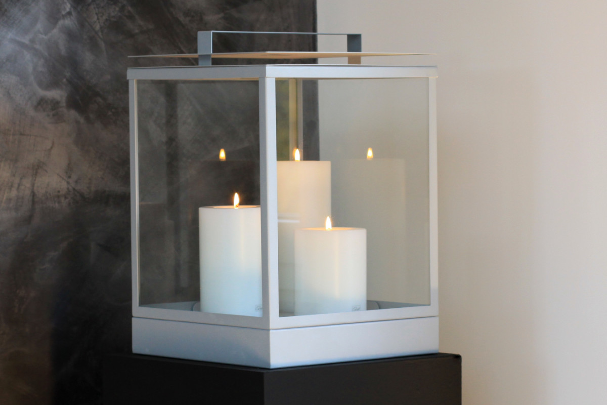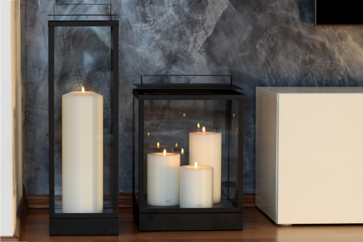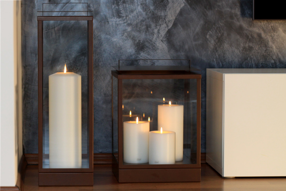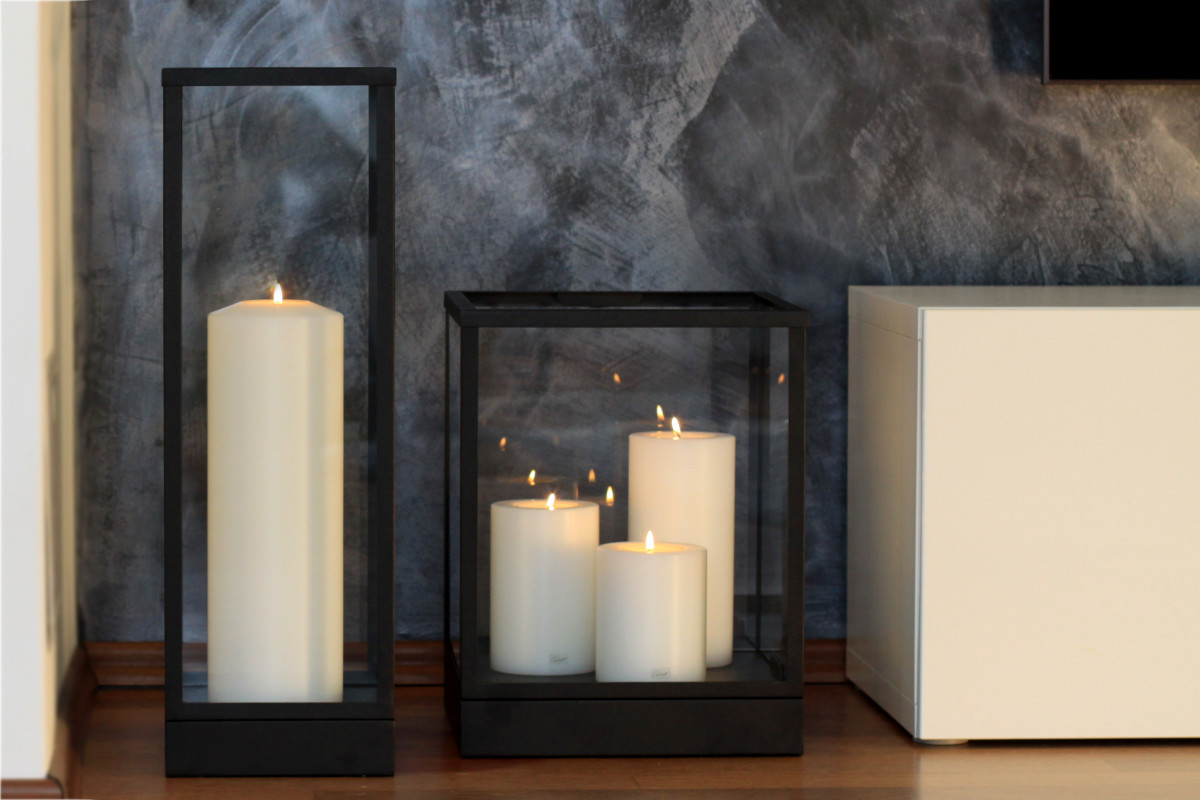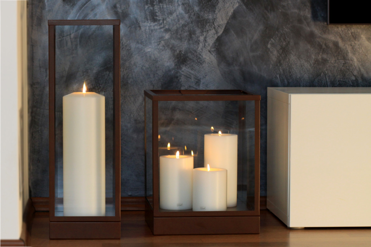 Whether on a table or sideboard – the handmade wind-lights in the QUINTA series bring understated elegance to any room. Made in powder-coated black, rust, Sahara or silver, they radiate warmth and timeless aesthetics.